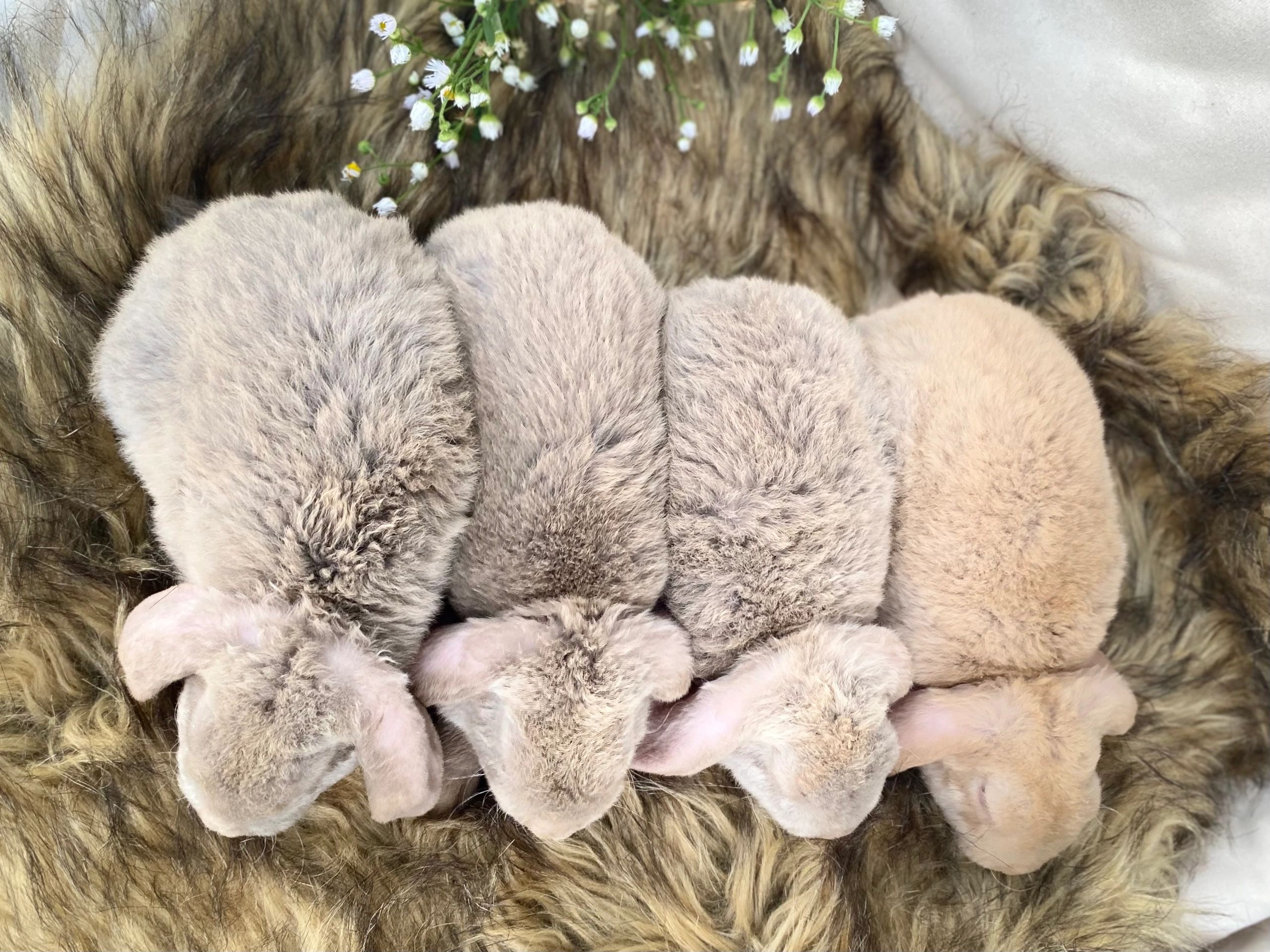 Chocolate harlequin. This boy carries Lutino and carries for the plush coat. If purchased for breeding, he could work for Holland lops or plush lops.